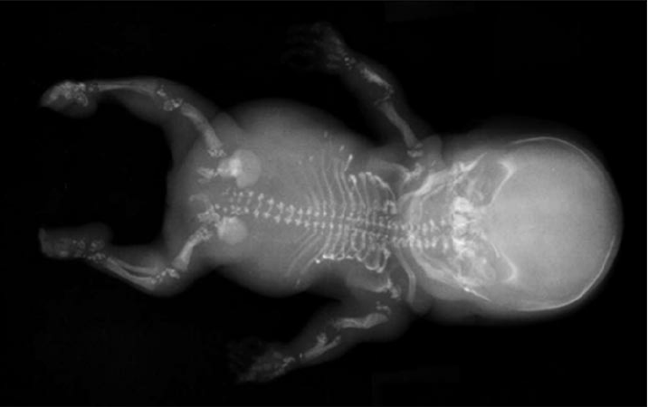 Choroba je spojená najmä s poruchami kostrového systému. Typický je nízky vzrast, krátke končatiny (mnohokrát nesúmerne) a krivá chrbtica. V koncoch dlhých kostí sa ukladá veľké množstvo vápnika. Objavujú sa aj isté abnormality v tvári, ako napríklad plochá tvár a prepadnutý koreň nosa. Postihnuté bývajú aj oči, u chorých častejšie dochádza ku vzniku šedého zákalu. Intelekt postihnutých je normálny, len výnimočne sa vyskytuje mentálna retardácia.