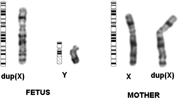 Pacient opísaný Lugtenbergom a kol. (2009) mal duplikáciu Xq13.2q21.1, siahajúcu od približne 72,4 do 79,6 Mb (v rámci BAC klonu CTD-2003H23 až RP11-608A14). Táto ~ 7 Mb duplikácia sa nedala detegovať rutinnou chromozómovou analýzou ani retrospektívne pri 500-pásmovom karyotype. Pacient vykazoval mnoho znakov pozorovaných aj u druhého pacienta (chlapca opísaného v inej správe), vrátane ťažkostí s kŕmením v detstve, generalizovanej hypotónie, psychomotorickej retardácie, mentálneho postihnutia, poruchy reči, nízkej postavy, bilaterálnej ptózy, vysoko klenutého podnebia, nízko nasadených uší, pectus excavatum, genu valgus a kryptorchizmus. Duplikácia tohto pacienta zužuje kritickú oblasť zodpovednú za spoločné klinické znaky s pacientom opísaným Lughtenbergom.