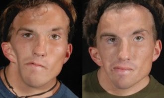 - makrostómia (ústa sú neprirodzene zväčšené a tiahnu sa viac na jednu stranu)