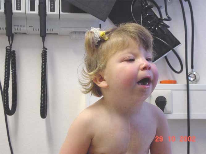 - štrukturálne abnormality s chýbaním corpus callosum (zhluk nervových vlákien spájajúci obe mozgové hemisféry), čo môže spôsobovať mentálna retardácia rôzneho stupňa, kŕče a epilepsia, hydrocefalus