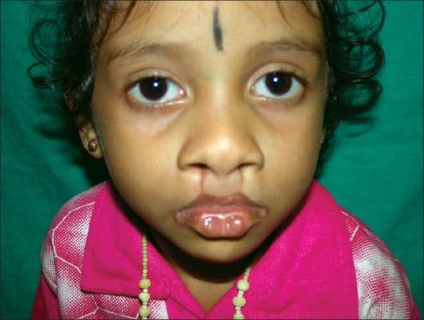 - zvýraznená „jamka“ na spodnej pere (prítomné u 30% až 79% prípadov)